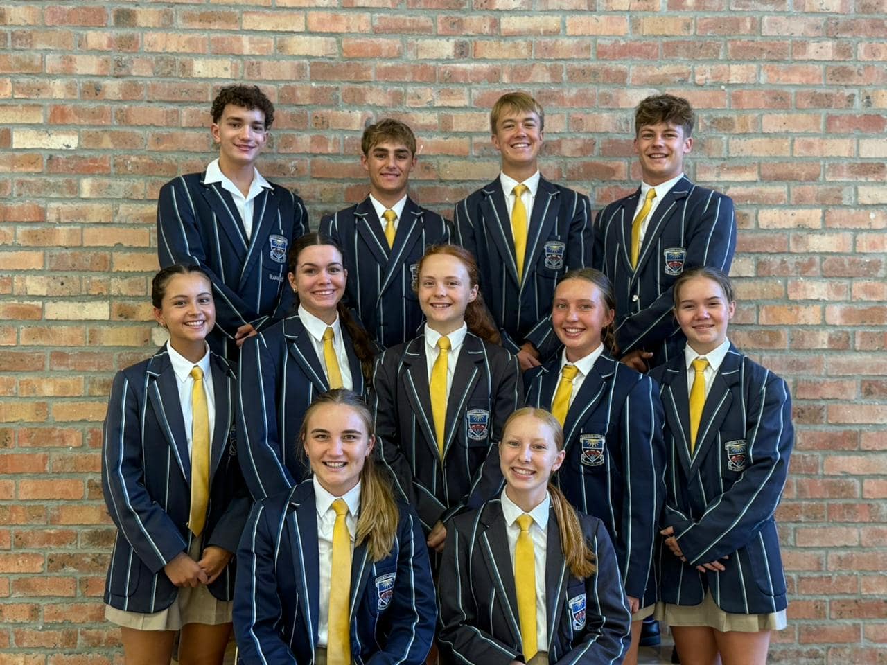 Agter v.l.n.r. : Finnian Smit, Tian Colyn, Nico du Raan, Dewan Coetzee.Middel v.l.n.r. : Bella Theron, Caresa Smit, Emma Keating, Mika Gelderblom, Talja Chamberlain. Voor v.l.n.r. : Micaél Laubscher, Luamé Lombard.