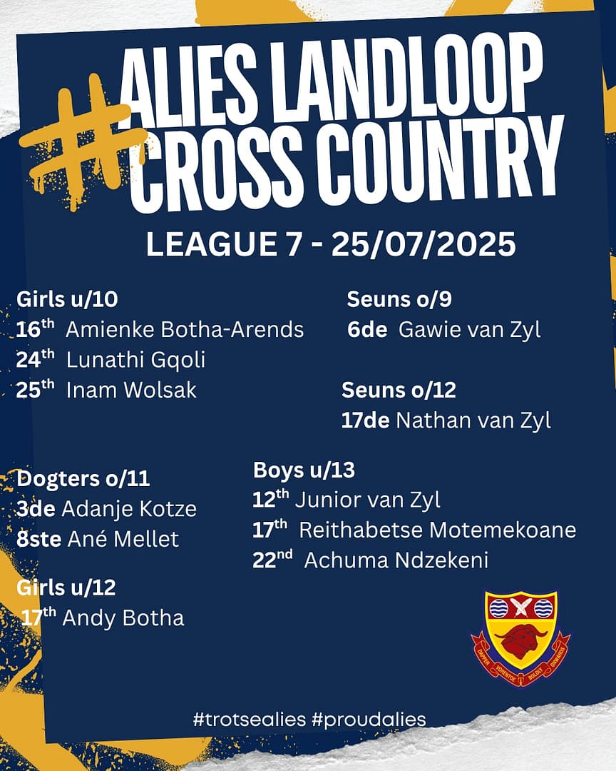 Congratulations to the following cross-country athletes from Aliwal-North Primary School on their excellent results! We are very proud of you.