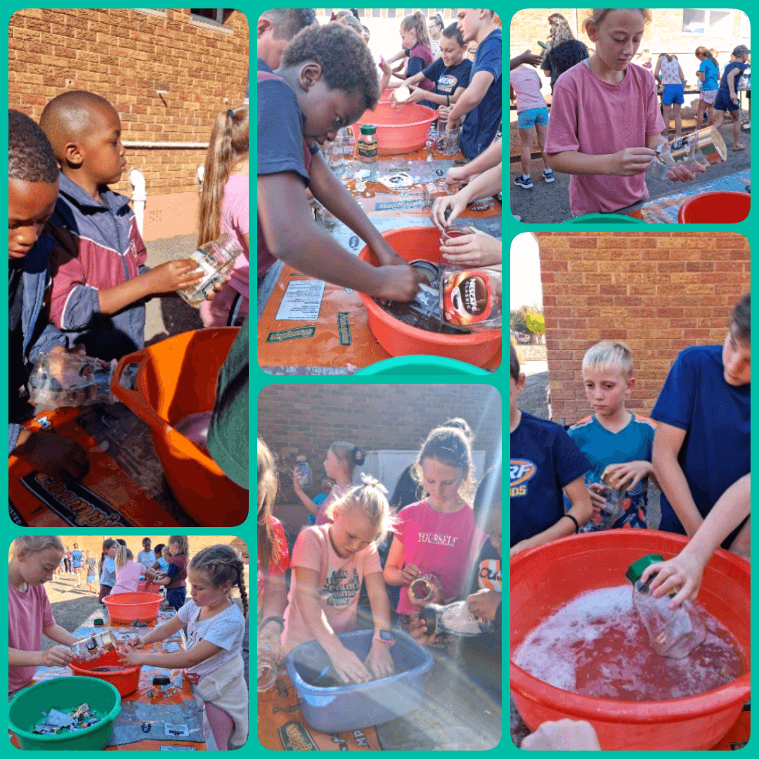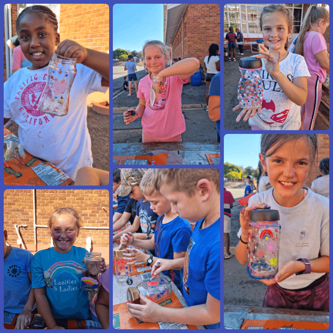 At the Aliwal-North Primary School’s monthly Land Service meeting, on the 17th April 2023 the Grade 4 and 5 Land Service members cleaned and decorated the coffee bottles that will be used for the Jars of Hope project. Ons het die bottels versier deur mooi patrone daarop te verf. Hierdie is ‘n kwartaalprojek wat die Ons-Gee-Om Landsdiensklub huidiglik mee besig is. Die hele skool word betrek en word aangemoedig om sopbestanddele en leë koffie flesse te skenk.