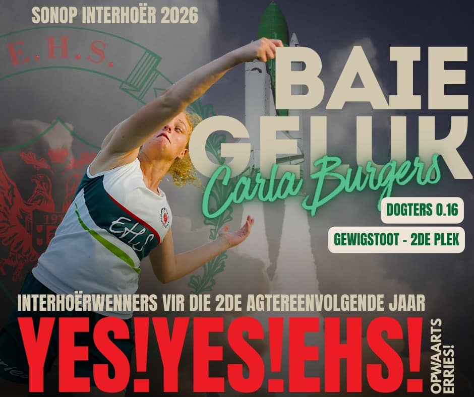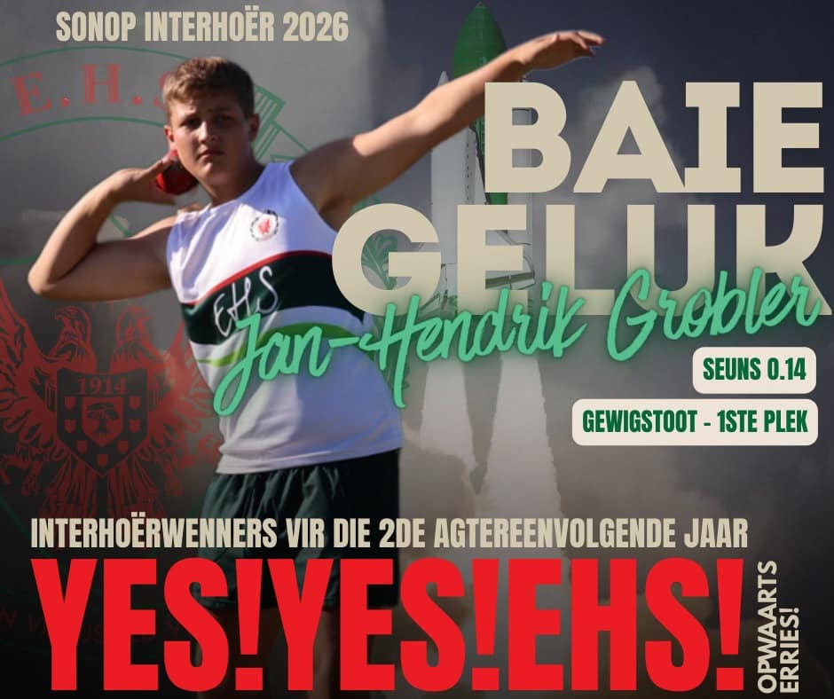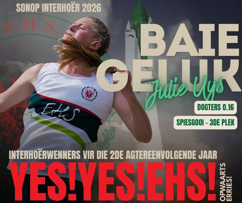 Baie geluk aan ons atlete wat besonders presteer het gedurende die Interhoër te Lydenburg. Baie dankie aan ons sangatlete wat die pawiljoen se dak gelig het met hulle Errie-gees en volgehoue ondersteuning. Ons is trots om te kan sê dat die Hoërskool Ermelo Interhoërwenners is vir die 2de agtereenvolgende jaar!