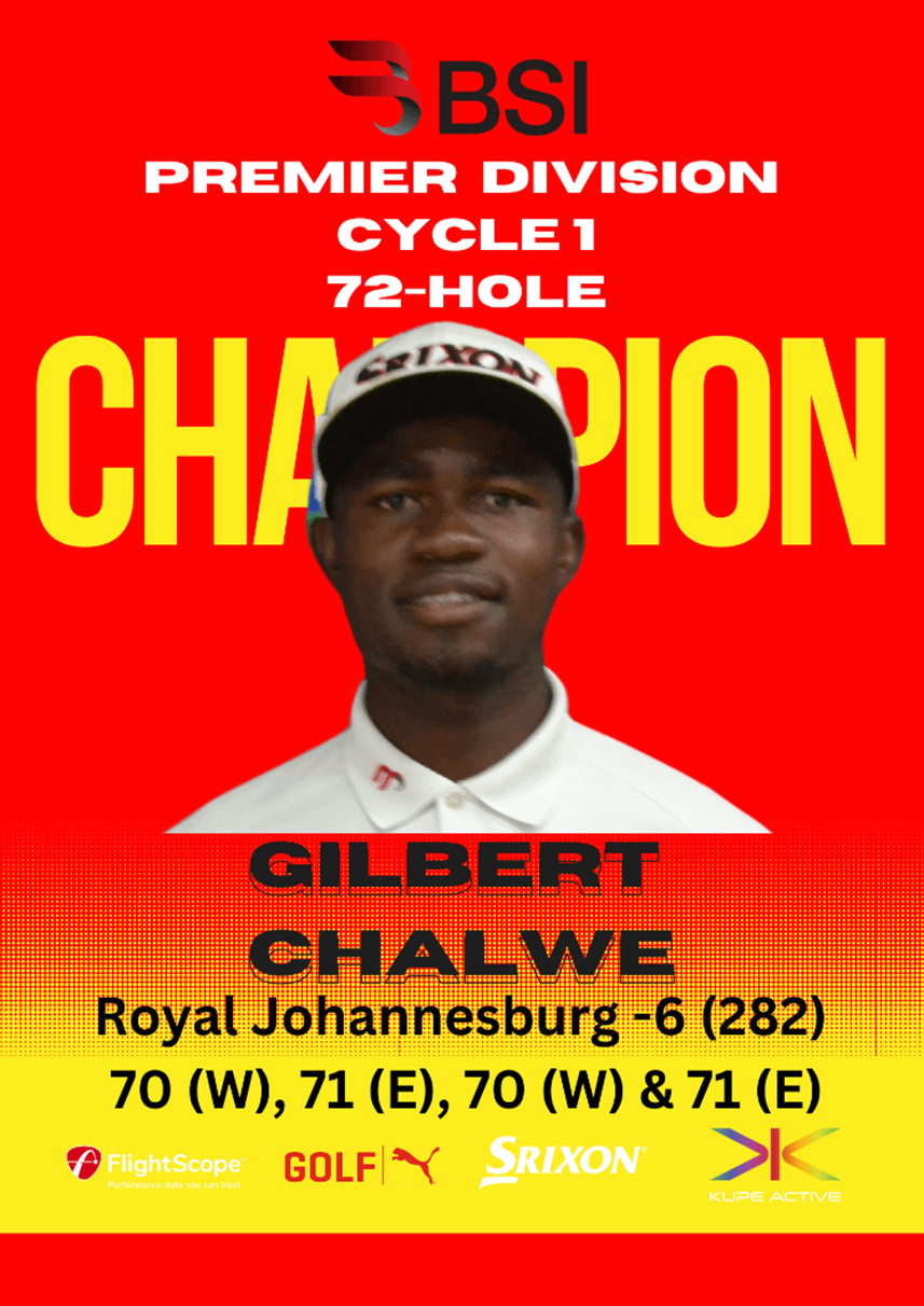 Huge Congratulations to Gilbert Chalwe, for his win in the BSI Premier Division end of Cycle 72-hole Championship which took place last week at Royal Johannesburg on both West and East Courses.