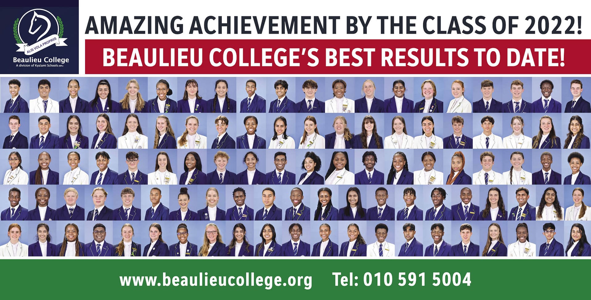 On behalf of Beaulieu College I would like to extend our gratitude to all our administration and auxiliary staff for the key role they have played in facilitating this group’s success. Thank you also to all the parents for their role in supporting their children. Most of all I would like to commend the Academic Staff for the work each of them has put into making sure this group produced the best results in the history of Beaulieu College to date. Congratulations to each and every pupil – you have made us all exceptionally proud!