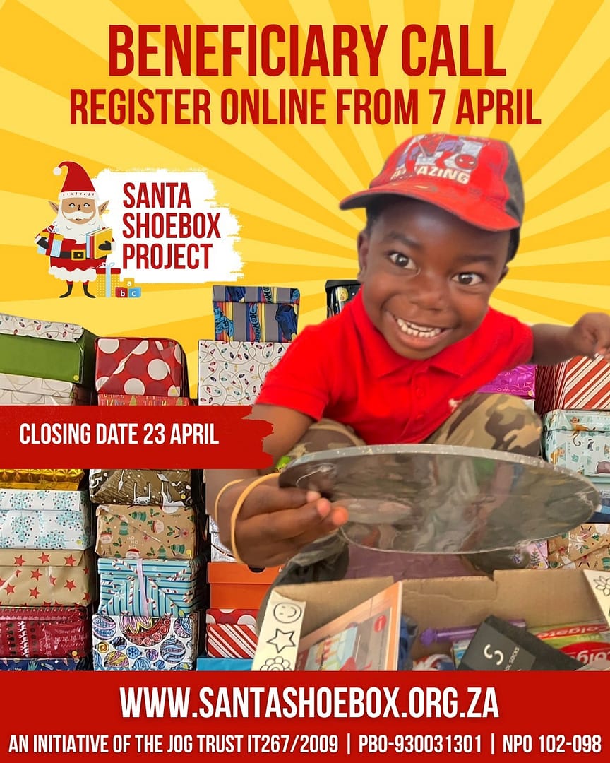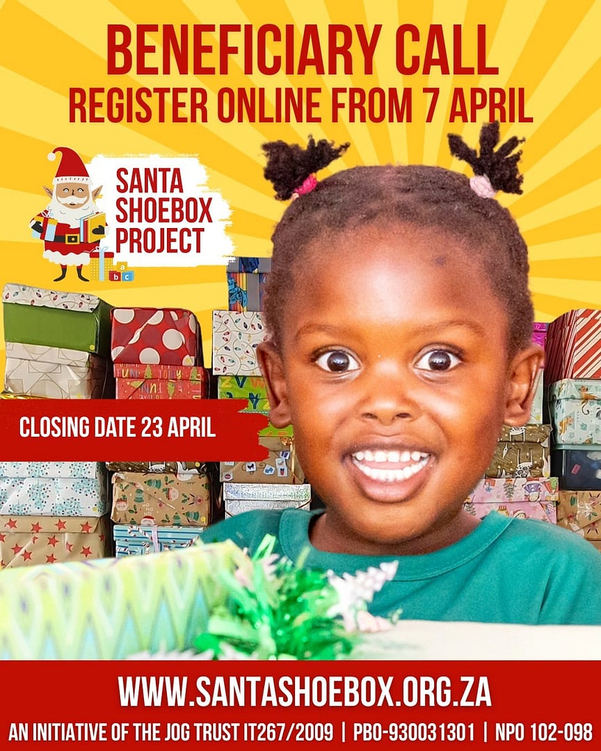 Santa Shoebox Project Celebrates 20 Years. Calling on schools and ECDs to apply to the Santa Shoebox Project in 2026. Cape Town, 26 March 2026 – As the Santa Shoebox Project (SSP) marks its milestone 20th anniversary, the organisation is officially inviting schools and Early Childhood Development (ECD) centres across South Africa to apply to become beneficiaries of their 2026 campaign.