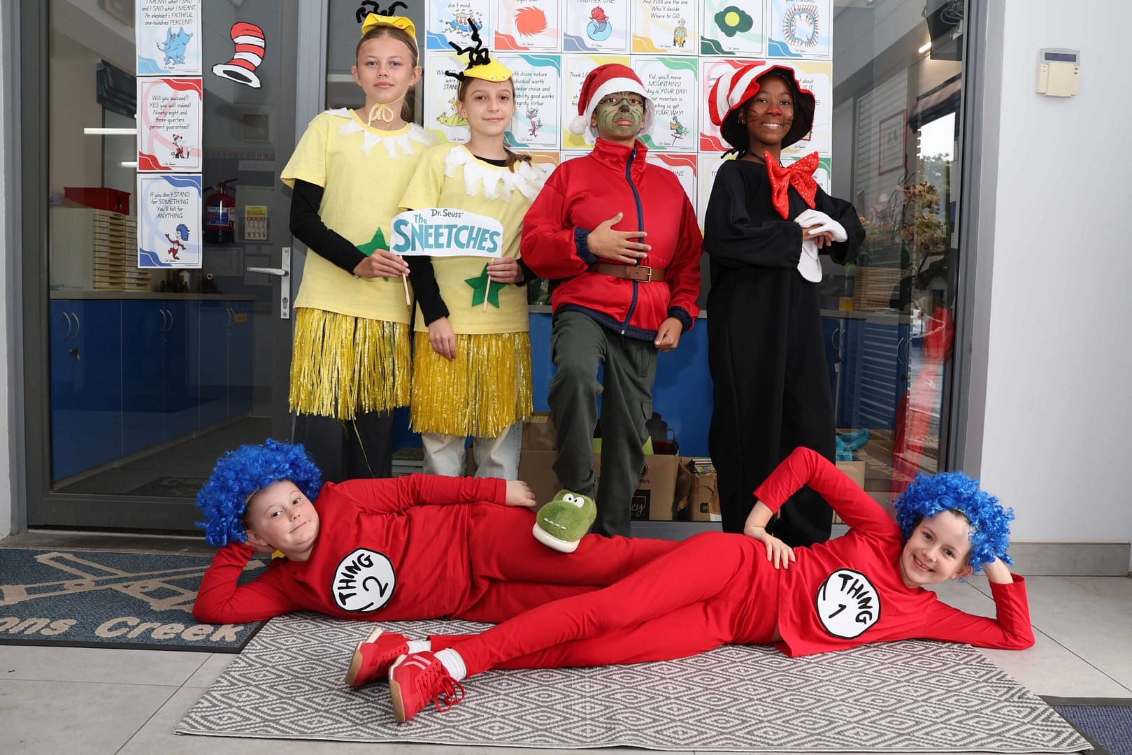 Why fit in when you were born to stand out?” Our Grade 6s celebrated in Dr Seuss style – Caleb Februarie, Sophie Schaal, Kanushi Sharma, Emily Gardiner-Atkinson, Atiya Kaplen. Front: Ronan Potgieter, Isla Rockhill, Amy Hoflinger, and Liam Bester.