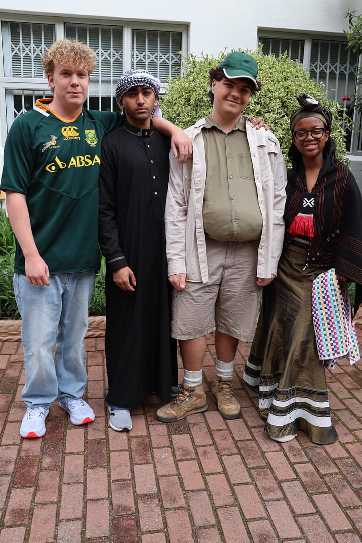 Grade 11 learners celebrating their rich heritage – Oscar Davies, Mohamed Ameer, Juan Coetzee, and Amarachi Zondi