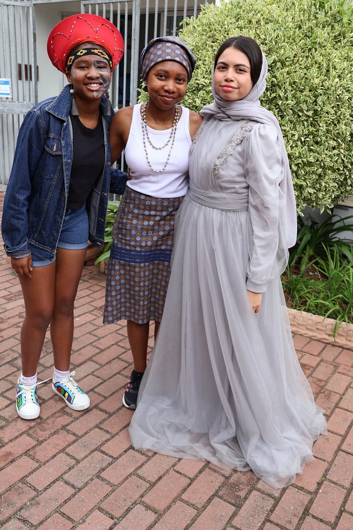 Grade 12 learners Juliana Eliakin, Amaal Cassiem, and Zoë Van Der Hoven celebrating one nation, many cultures.