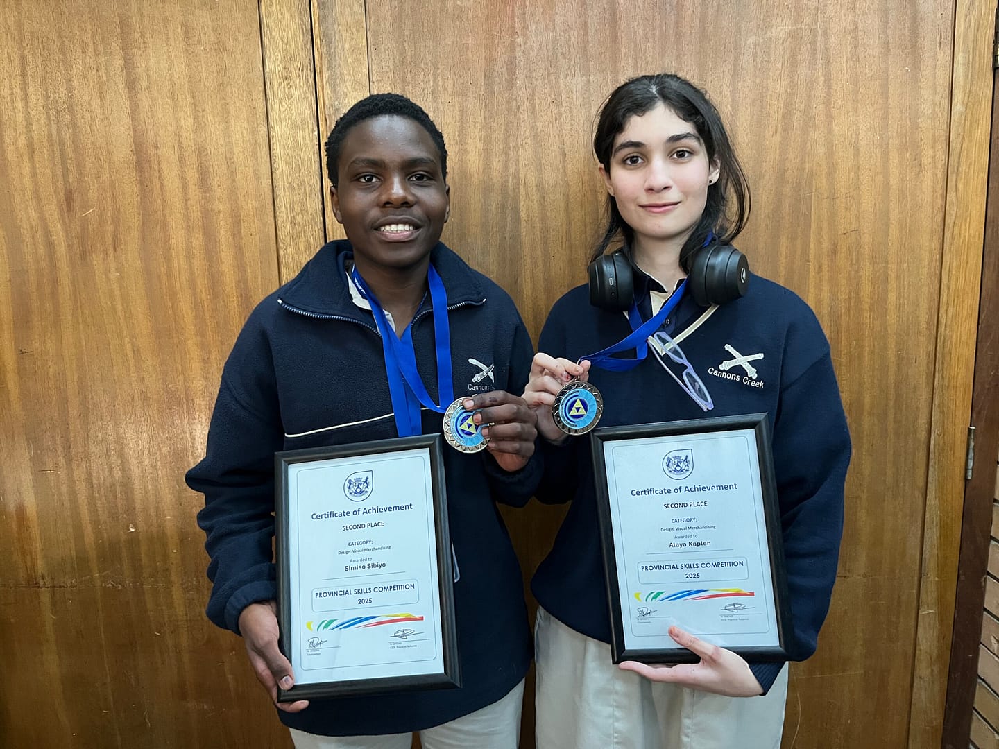 Congratulations to Cannons Creek Independent School’s Grade 10 learners Simiso Sibiya and Alaya Kaplen who achieved second place and won a silver medal in their category for visual merchandising, at the Western Cape Education Department’s 6th annual skills competition. The competition took place on 30 August 2025 at Bellville Technical College. This provincial competition sees pupils from a wide variety of schools in the Western Cape compete as teams of two per grade in two Design categories.