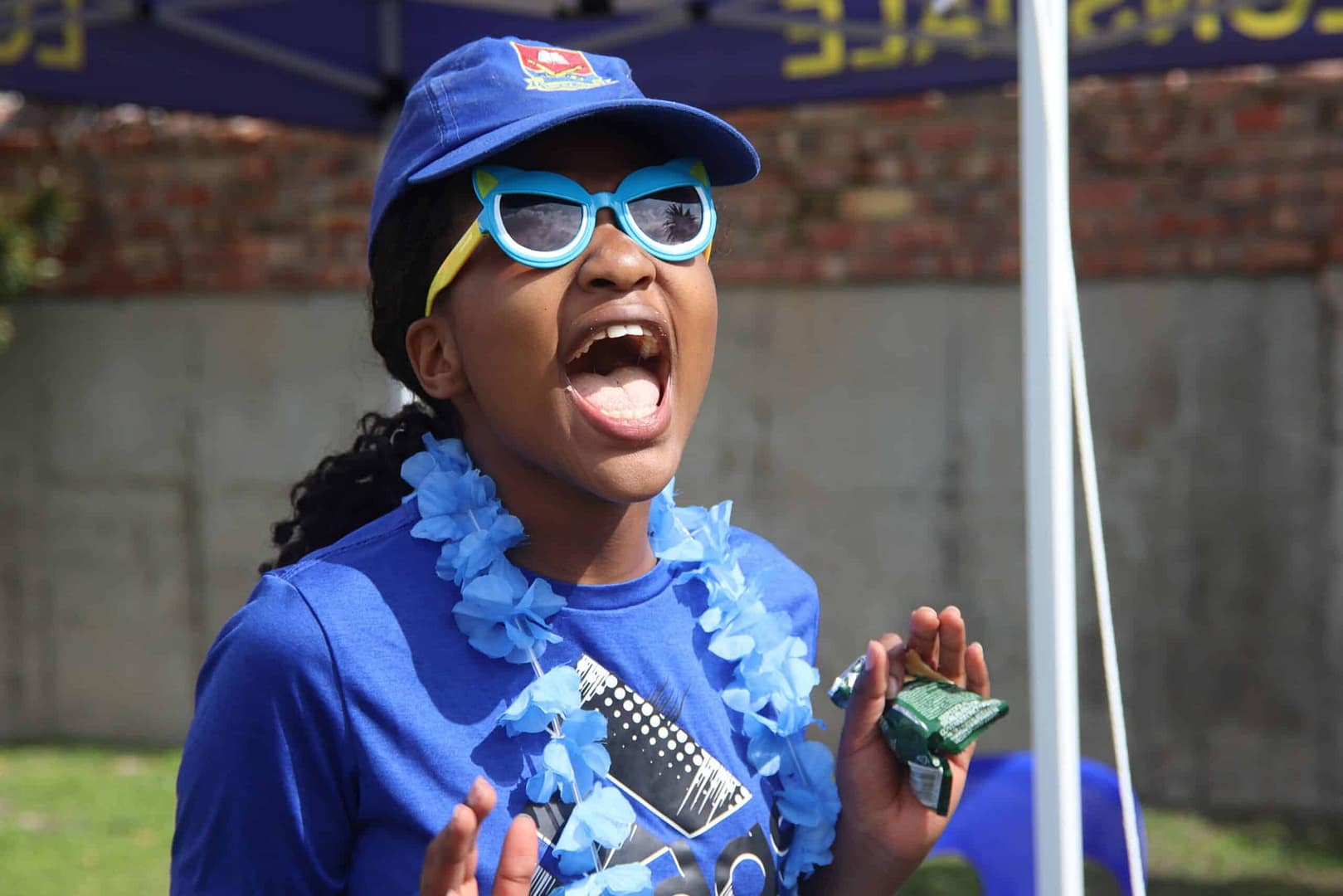 Grade 6 pupil and Lonsdale House member, Sazi Masango (Grade 6) cheering for her house.