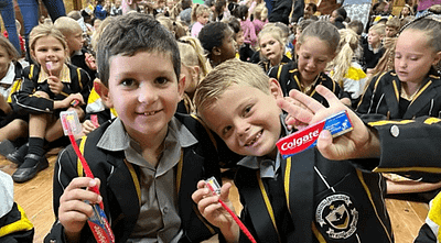 Colgate visited our Gr R to 3 Truida Kestell Primary learners to teach our learners the importance of brushing teeth and healthy eating habits. ...Laerskool Truida Kestell bergfietsryers presteer