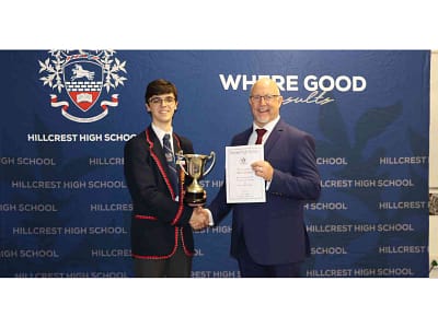 Hillcrest High School top achiever, Ethan Ainhirn, was awarded the coveted DUX Award, along with eleven other subject awards and trophies at the school’s ...- BloemfonteinCamps Bay High SchoolCity Bowl Atlantic SeaboardClapham High SchoolDurban and Durban NorthEastern CapeFree StateGauteng PretoriaGlenwood High SchoolGrey CollegeHillcrest High SchoolKwazulu-NatalLimpopoLowveldMeridian PinehurstMpumalangaNorthern SuburbsPort Elizabeth and SurroundsPTA NorthRegional NewsWestering High SchoolWestern CapeWestville Pinetown Hillcrest Kloof