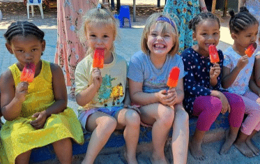 Die Voorskoolmaats het hul sandput verjaarsdag met lekker roomys gevier! -