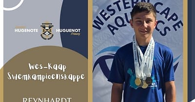 Hugenote Laerskool swemmer Reynhardt Grobler het aan die Wes-Kaap Swemkampioenskappe in Malmesbury deelgeneem en die volgende ongelooflike uitslae behaal: Goud in 50m borsslag én ...PSI Indoor Hockey Nationals achievement from Huguenot Primary School