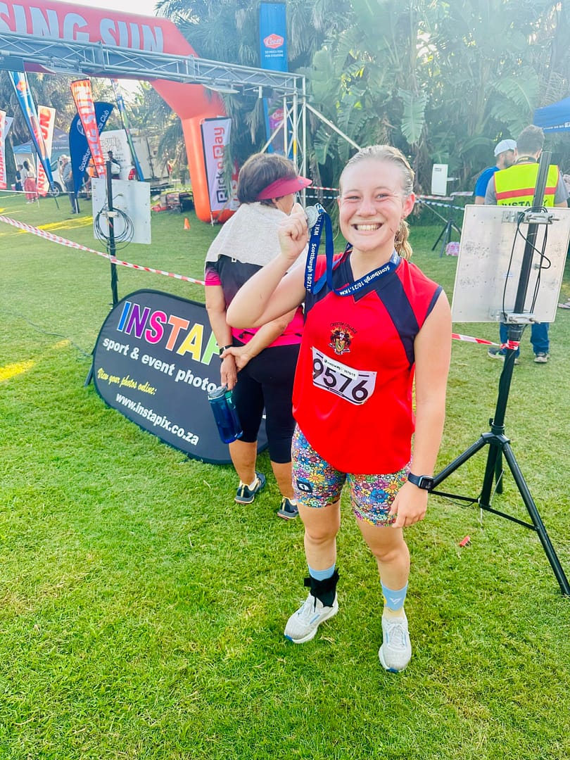 Simoné van Heerden in Grade 11 learner from Creston College participated in the Scottburgh 10 km on Sunday, January 14, 2024. She successfully completed the race with an impressive time, securing the 2nd position for the Juniors and the 16th overall position in the female category. This marked her first official race since rehabilitating her ankle injury in September 2023.