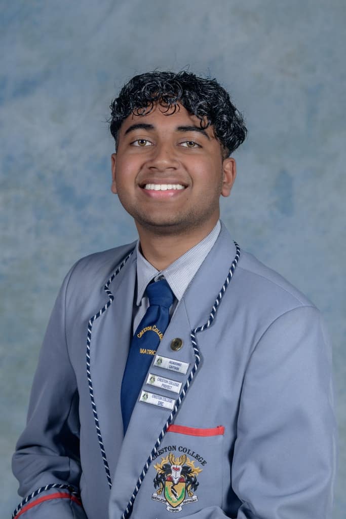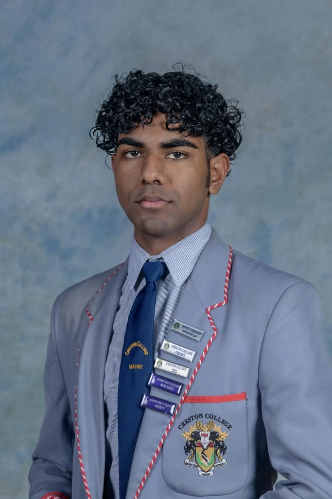 Meriqè Pillay, our top achiever with an average of 90,7% in his IEB examinations, has demonstrated dedication and consistency throughout his 15 years at Creston College. In addition to academic excellence, Meriqè has excelled in various sports, achieving notable accomplishments in chess, athletics and hockey. As a leader, he served as deputy head boy, consistently securing academic top 10 positions. Meriqè's achievements include being the dux approxime in Grade 7, ranking in the top 95 in South Africa for the Junior Maths Olympiad in Grade 9, and excelling in Conquestas. He received ‘honours with tie’ as he achieved an impressive 92% aggregate in his Grade 12 year.