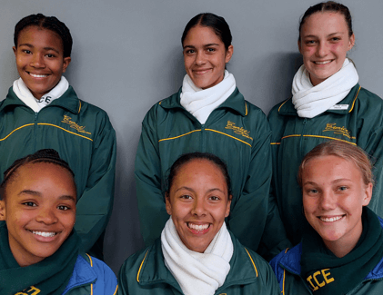 Back L – R Lynique Jacobs U16 B and Lesedi Mahole U16 A Front L- R Gomolemo Maake U18 A; Lesego Mahole, Unathi Kambule, Natasha Langa, Botho Zilanda, Kiara Ferris All U16A; Asandile Wonci and Kayleigh Geel U18A