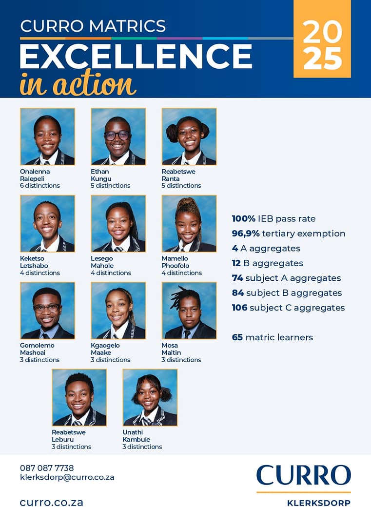 Curro Klerksdorp outstanding Matric Results for 2025