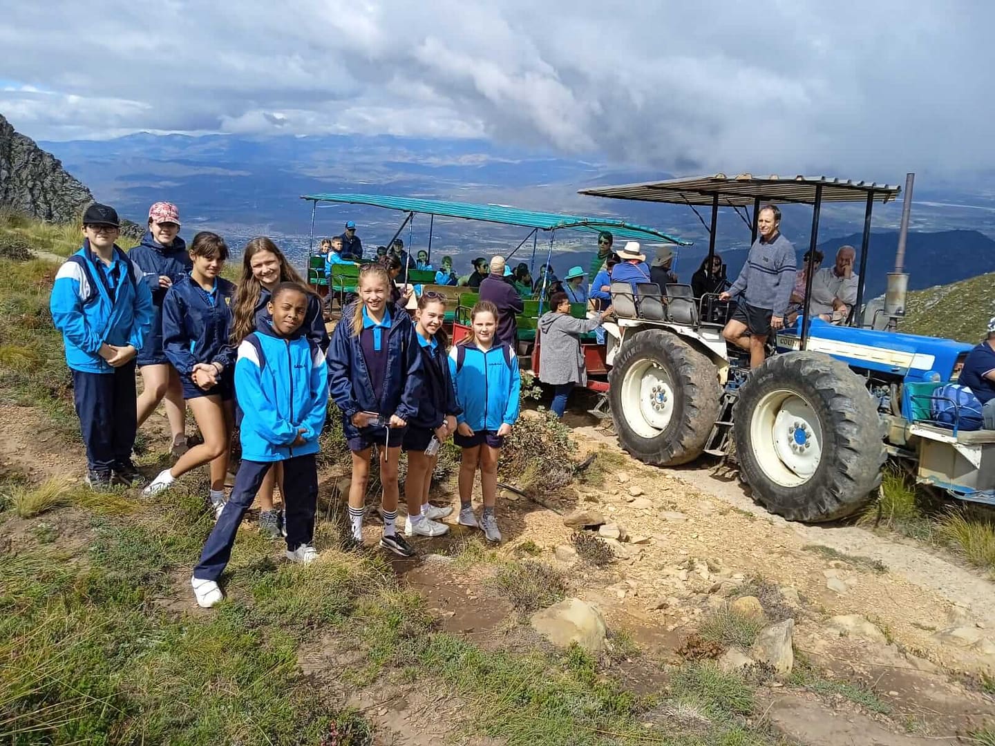 Die spannetjie bo-op die berg by Proteaplaas by die trekker wat hul teen die berg op geneem het.