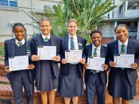 The following swimmers received Merit Certificates for their selection into the Umlazi District Swimming Team. Payton Groger, Letokulhe Makhubu, Ayanda Ntaka, Roslyn Ramoholi and Kate Truter.