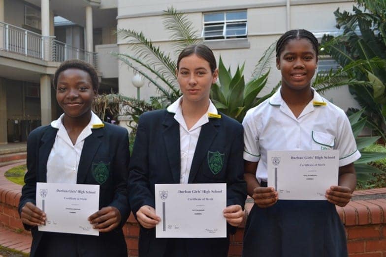 Roslyn Ramoholi, Payton Groger and Lethokuhle Makhubu were awarded Merit Certificates for representing the Umlazi District Schools Swimming team.