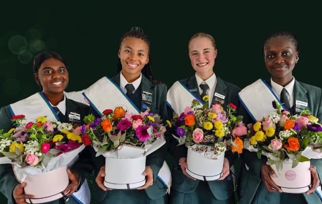 Kiara Subramanian (Vice Headgirl: School), Lesedi Motaung (Headgirl: School), Cale Potgieter (Headgirl: Eunice House) and Oprah Mukhebi (Vice Headgirl: Eunice House).
