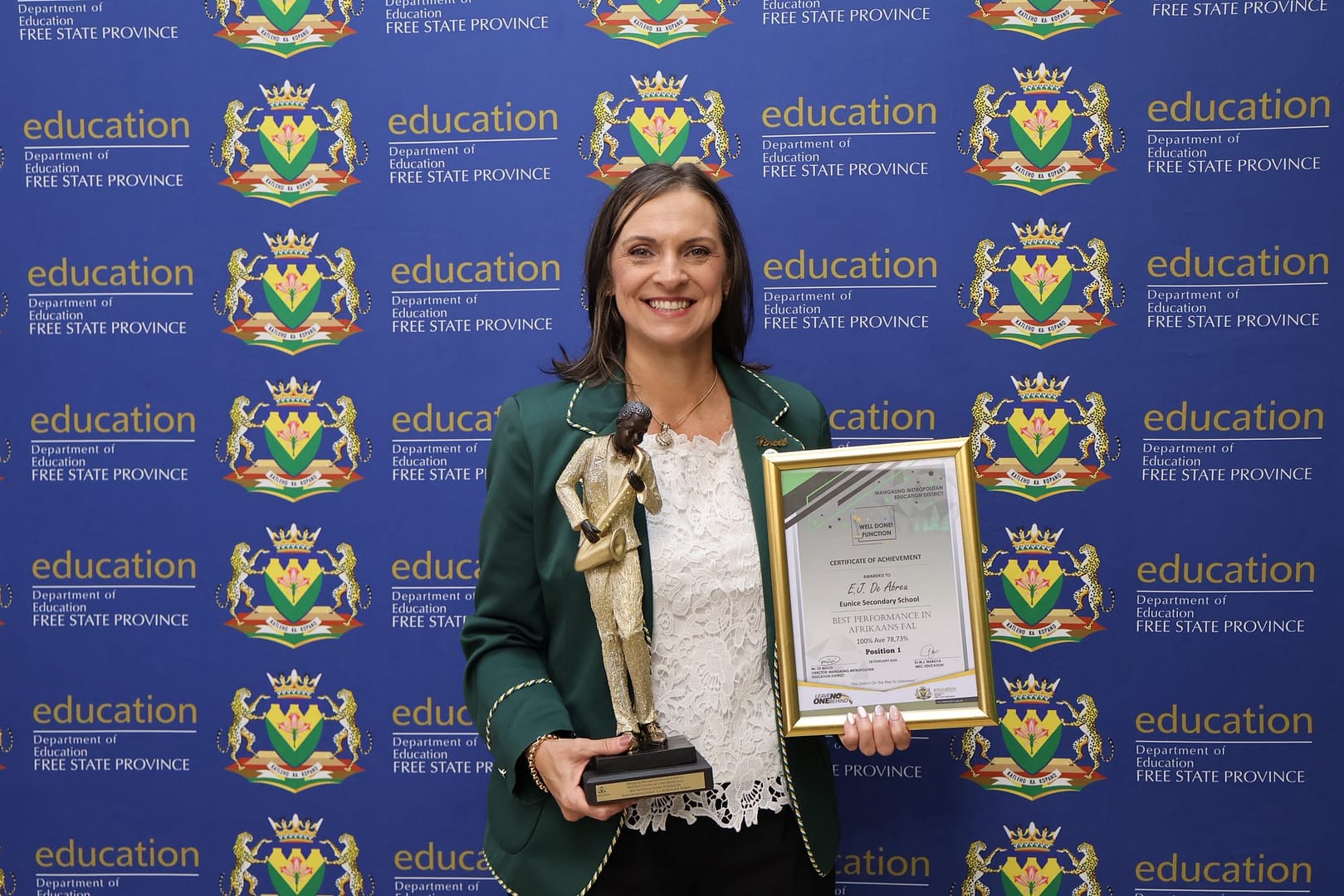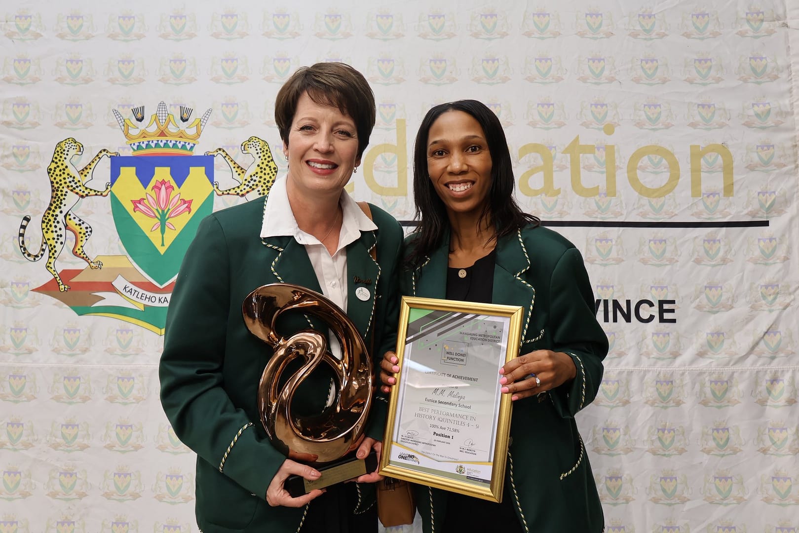 A heartfelt congratulations as well to Mrs Harris and Eunice Primary School for being placed third among the Top 5 Primary Schools in the district. What an outstanding achievement! Two of our learners, Masabata Pheko and Lana Junqueira (absent) also received a special award for their brilliant matric results. To our staff and learners, your dedication, excellence, and commitment to education continue to make our school community proud.