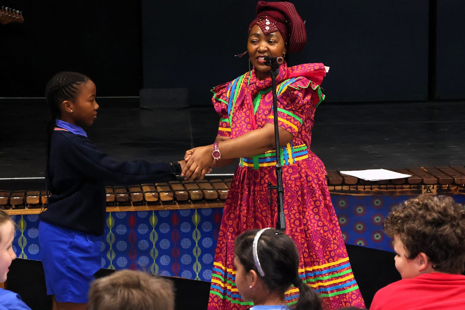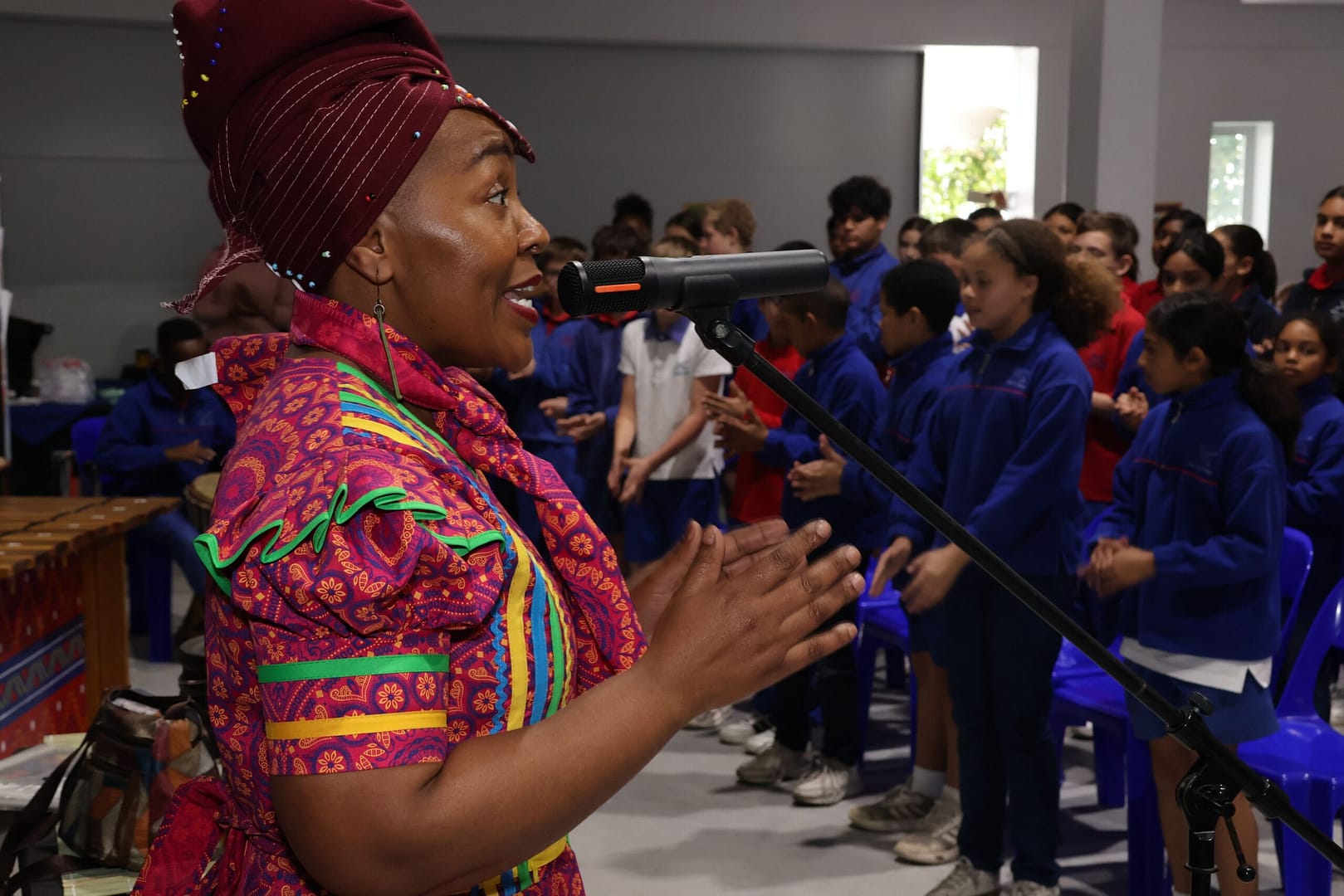 On 9 September 2025, Cannons Creek Independent School hosted nternationally-acclaimed isiXhosa poet, singer, storyteller, actress, and language teacher – Linomtha Nobuhle. She shared with the audience how she came from Transkei at the age of 18 with her mother and siblings, not able to speak English and how she travelled overseas, sharing the importance of isiXhosa through singing, poetry and acting. “This language has worked for me,” said Nobuhle; encouraging the Grade 4-6 pupils to teach isiXhosa one day even if they are not native speakers. Nobuhle spoke about isiXhosa greetings – that they are more than words, that it is a sign of respect, acknowledgement and a way of showing ubuntu.