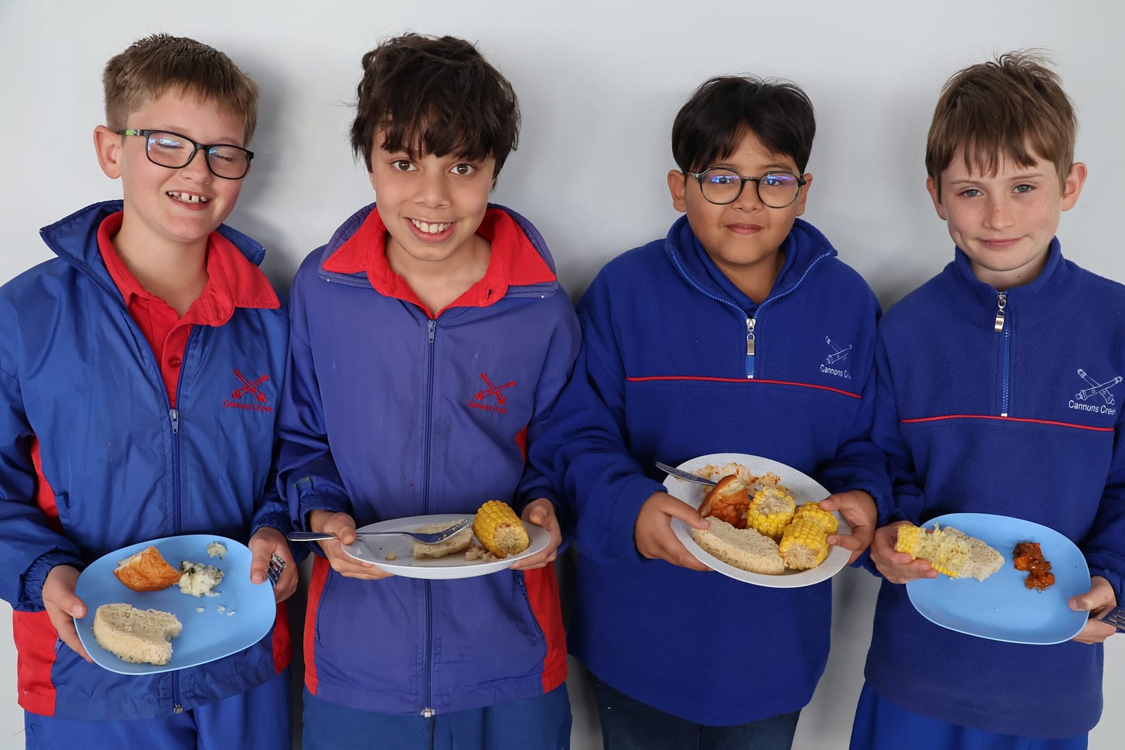 . Grade 4 pupils enjoying their traditional isiXhosa foodstuffs – Shaughan Gay, Imraan Harris, Raaqib Bardien, and Jono Du Plooy.