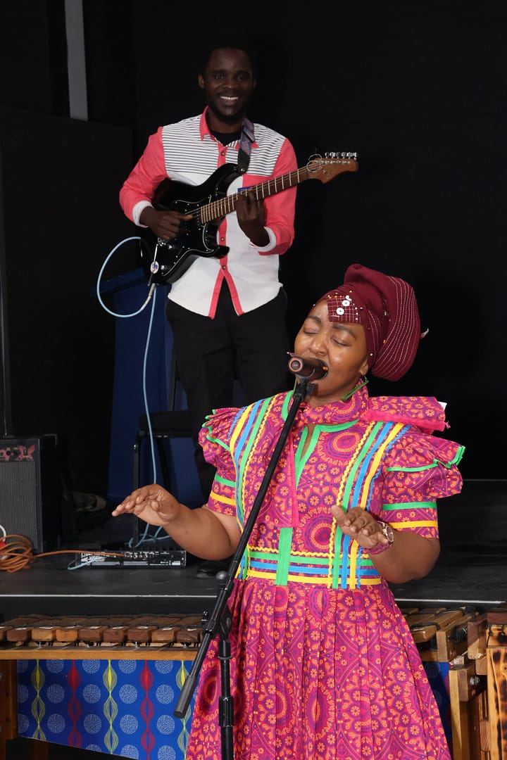 Mngcwengi Malson and Linomtha Nobuhle entertaining the audience with their rendition of Miriam Makeba’s ‘Qongqothwane’ (Click Song).