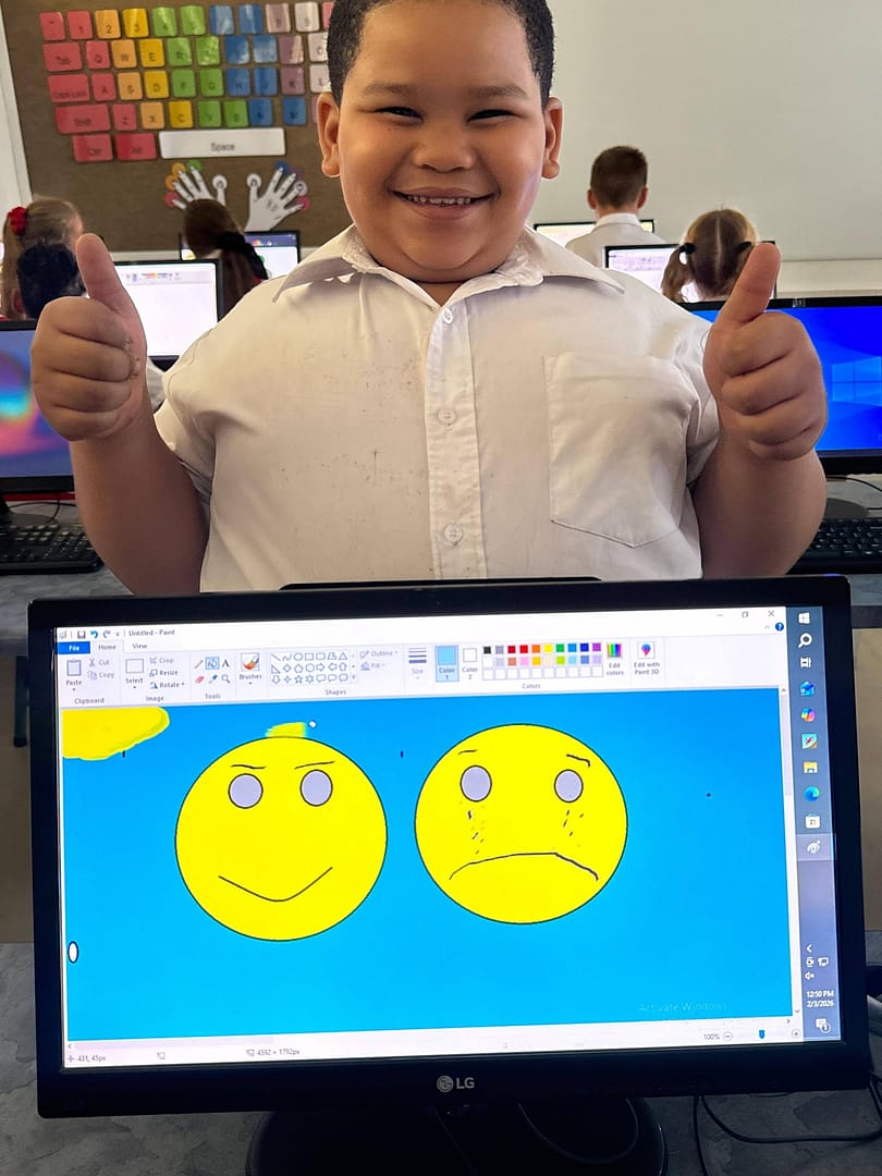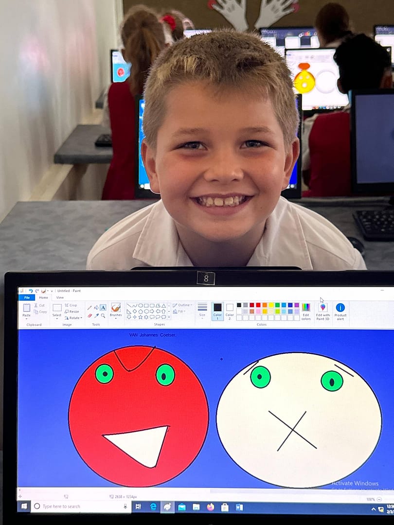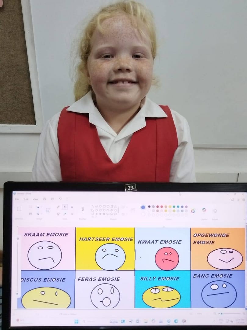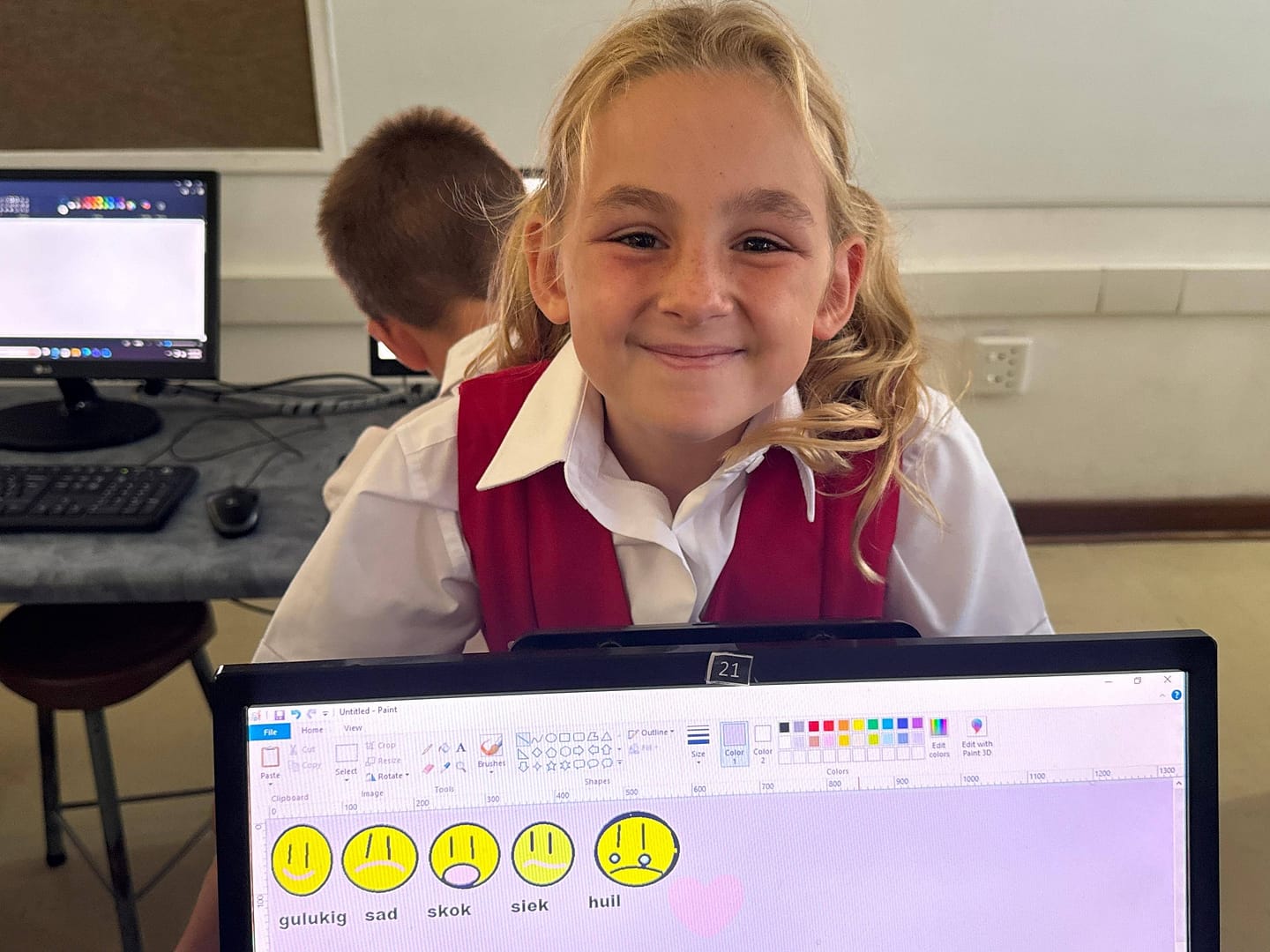 Laerskool Stulting Primary are learning more about emotions and developing our creative computer skills. Learners are exploring different feelings and learning how to express them visually. At the same time, they are practising important computer skills such as mouse control, creativity, digital drawing and using basic tools on the computer. The activity also encourages self-expression, imagination and confidence in using technology.