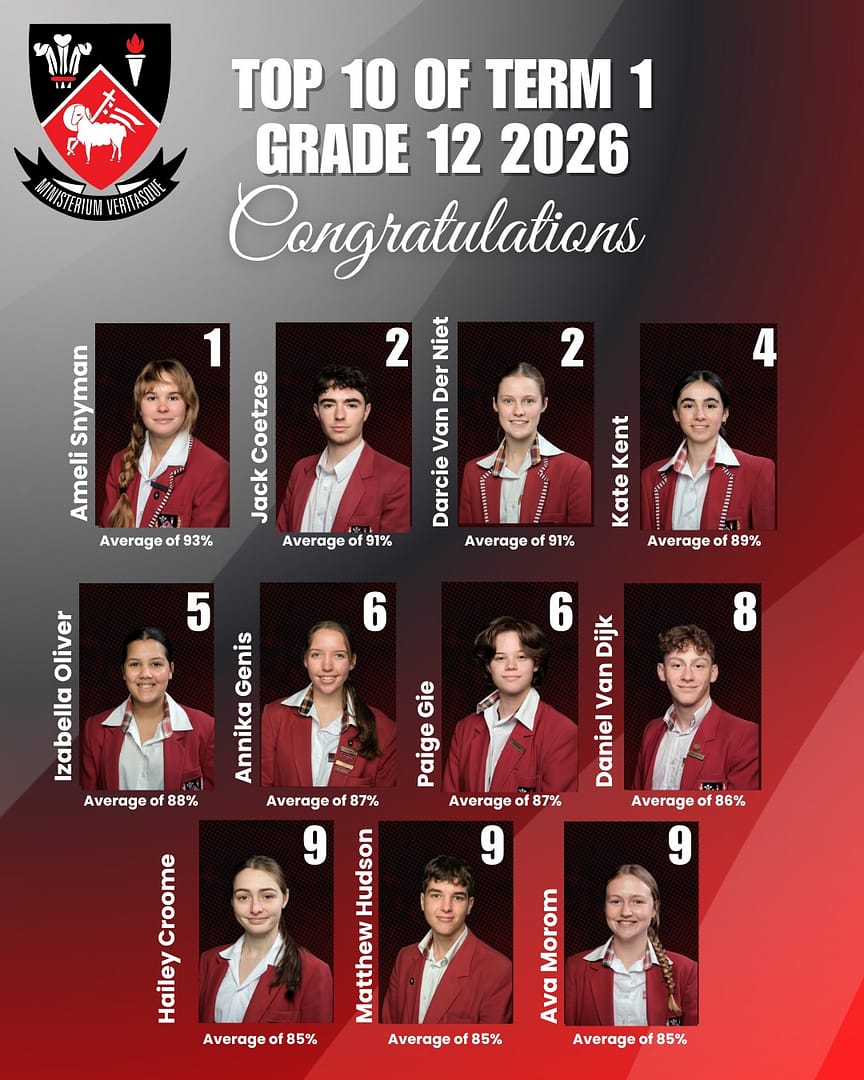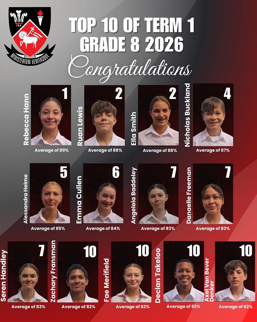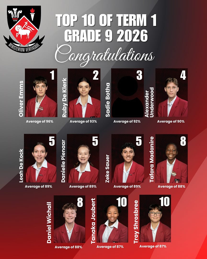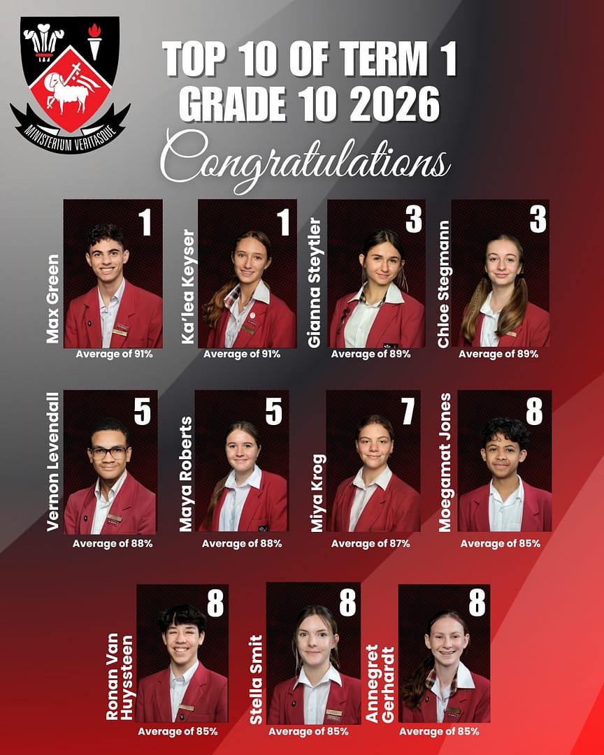 A huge congratulations to Fish Hoek High School Top 10 learners from Grade 8 to Grade 12 for their outstanding academic achievements in term 1! Your dedication, hard work, and commitment to excellence have truly paid off. Keep striving, keep shining, and keep reaching for even greater success!