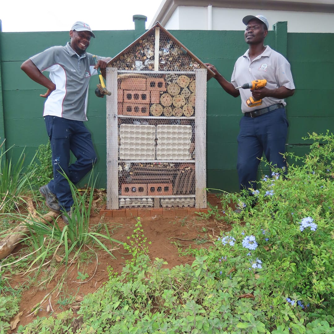 This year, their completed rooms have been assembled into the Glenashley Prep Insect Hotel, proudly placed in one of our indigenous gardens. Our thanks to our Hotel “designer’ Principal Naaim Jaffar, and our Hotel ‘craftsmen’, Mr Petros Xulu and Mr Simon Mzimela. Surrounded by local plants and natural habitats, the hotel is now ready for its first tiny visitors. The Green Team is excited to monitor the space, observe the new guests who arrive, and continue encouraging biodiversity within our school grounds.