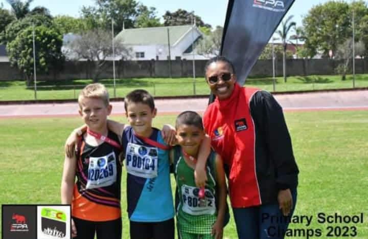 Congratulations to Jaryd Botha learner of Kabega Primary (third from left) who came 3rd in the final heat of the EP Schools Championship u.9 60m sprints. He has also been selected to represent the EP team who will be representing the province in Secunda on 2nd December.
