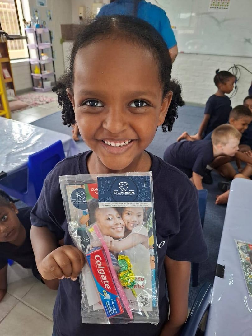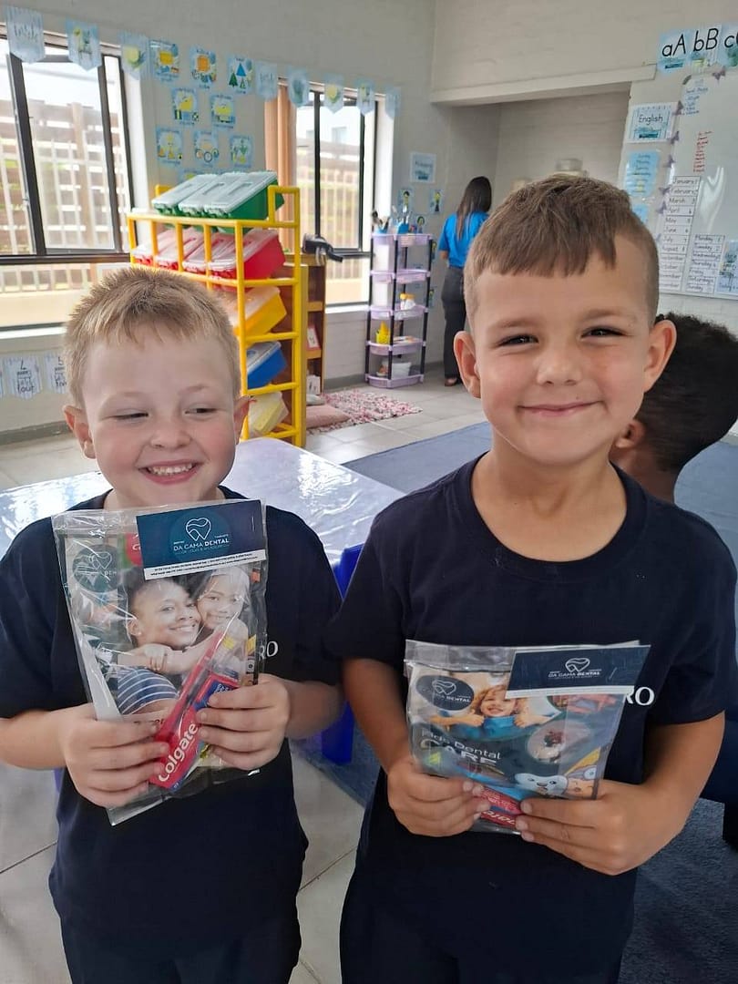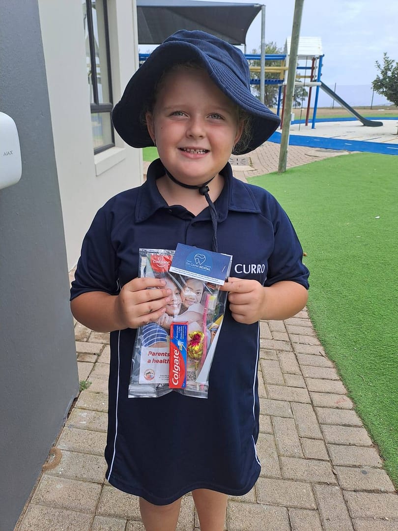 Da Gama Dental het vir Curro Mosselbaai se Graad R- en Graad 1-leerders tandepasta- en tandeborsel-pakkies gestuur.Sulke gebare maak ’n groot verskil in die leerders se daaglikse roetine en help om van kleins af goeie mondhigiëne-gewoontes te vestig.Hierdie inisiatief van Da Gama Dental dra nie net by tot gesonder glimlagte nie, maar versterk ook die boodskap by die leerders van Curro Mosselbaai dat selfversorging en trots op hul eie welstand reeds op ’n jong ouderdom begin.