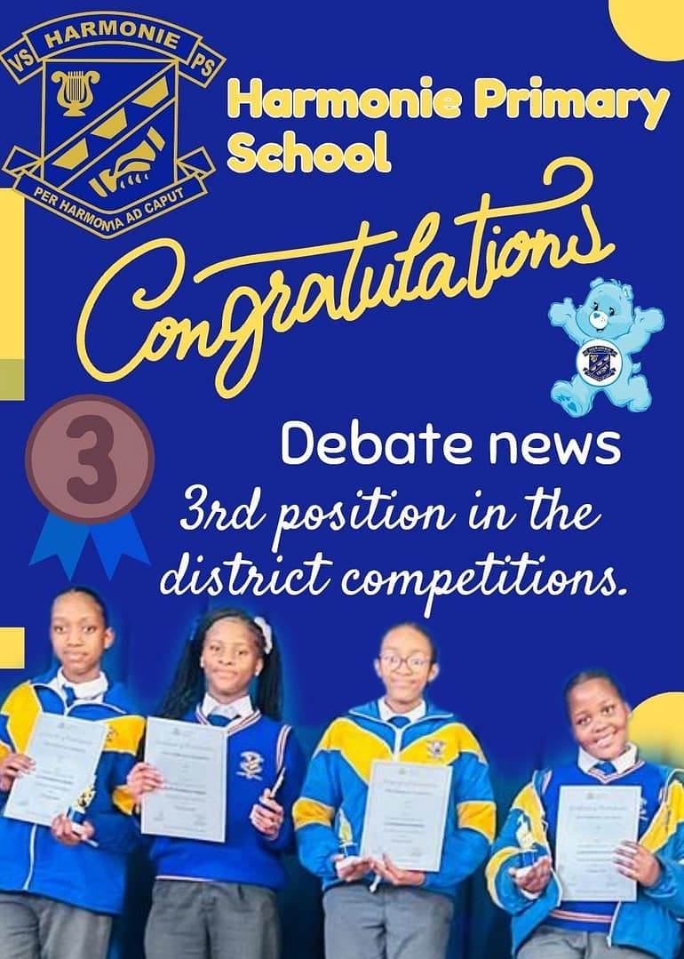 Congratulations to Harmonie Primary School Debate Team for achieving 3rd place at the district competition! Their hard work, confidence, and critical thinking skills made us proud.