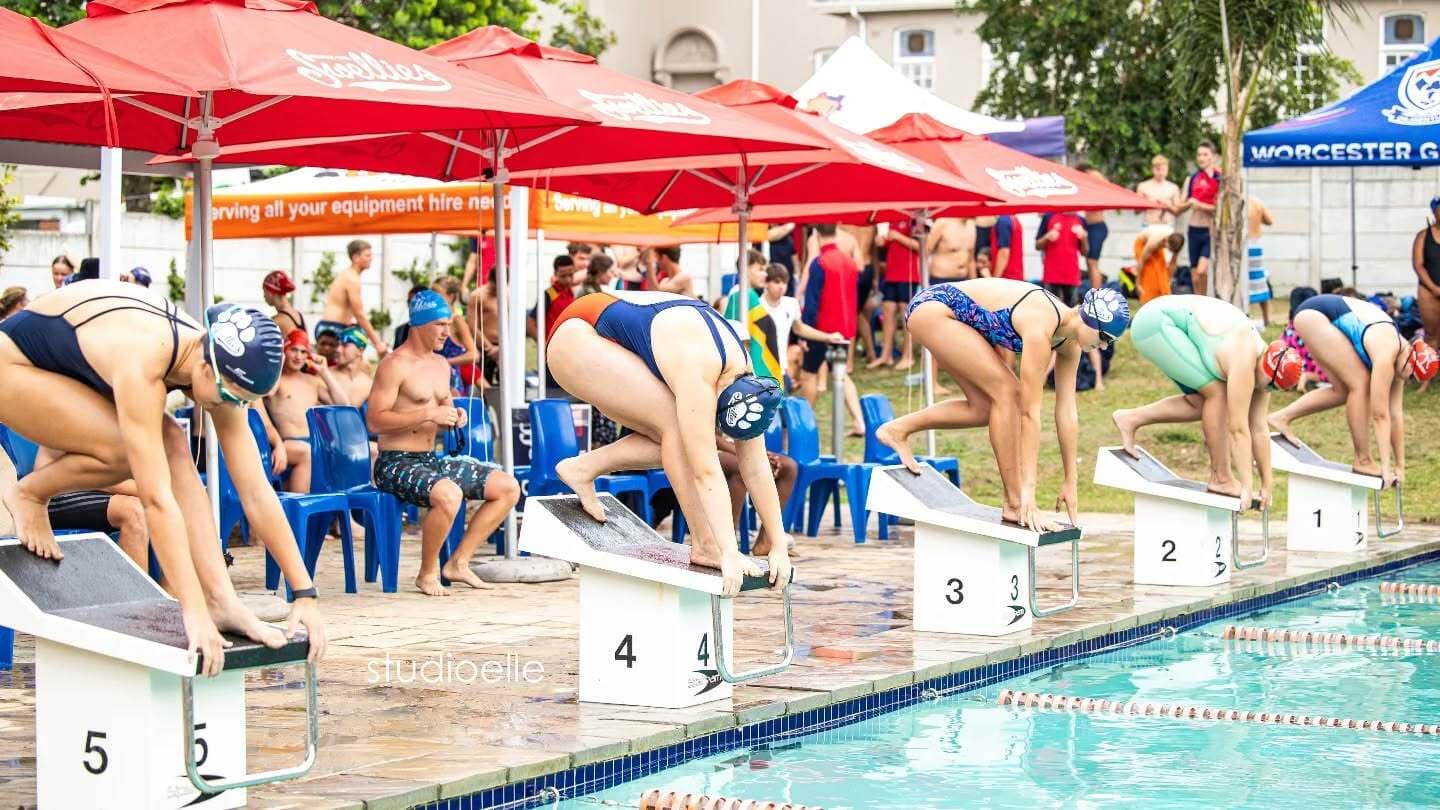 It was wonderful to see the developmental team from Worcester Gimnasium hold their own, the dedicatedswimmers from Bonnievale take part despite having only two swimmers, and the impressive number of competitors from HTS Drostdy. We were also delighted to welcome our faraway friends from Charlie Hofmeyr High School who made the trip, as well as our returning friends from De Villiers Graaff High School, Robertson, and Hermanus High School. Our own Swellies did not disappoint, showing great spirit and tenacity.