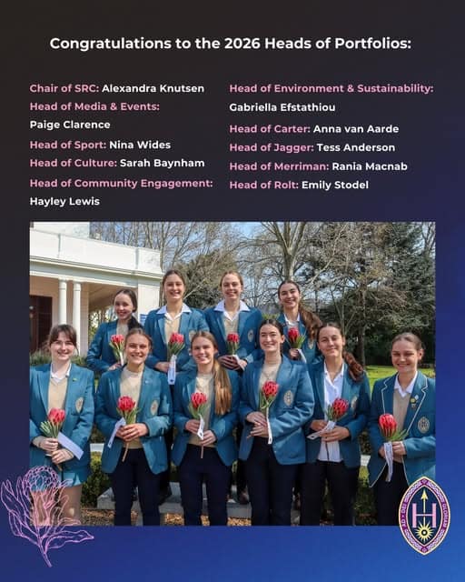Herschel Girls School are exceptionally proud to announce our 2026 Heads of Portfolios! Congratulations to all of you. To our Heads of Portfolios: Proteas are a symbol of courage, change, growth and resilience – may all of you have the courage and resilience to drive change and growth in your area of school life, making it a space of fun, belonging and development for all at Herschel.