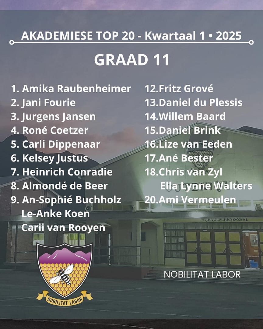 27th February 2026By Karien FransHiermee die Akademiese Pryswenners van Hoërskool Bredasdorp 2025