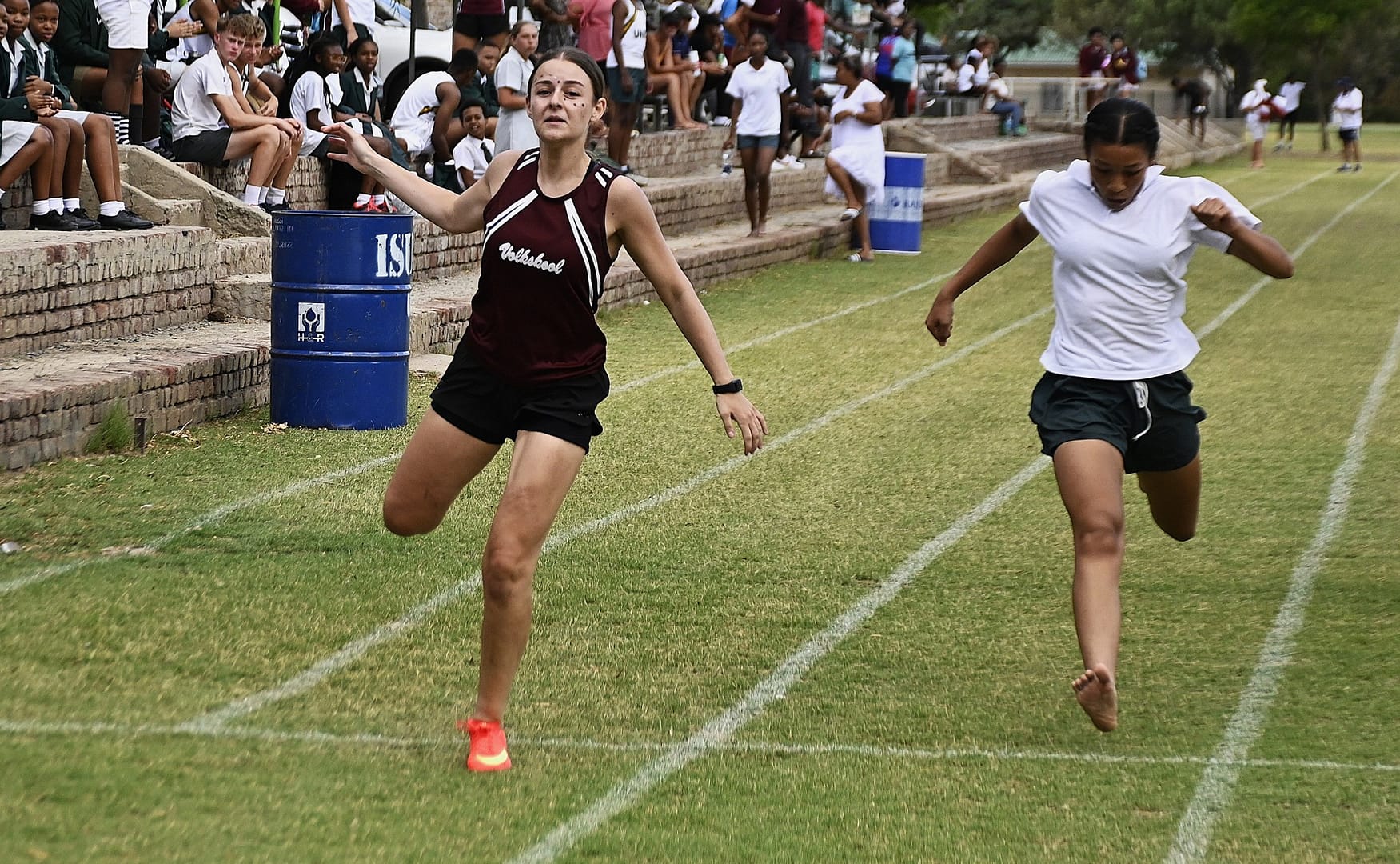 Verlede week het Hoër Volkskool teen Union High School op die atletiekbaan kragte gemeet. Dit was ‘n aangename dag met goeie sportmansgees wat tussen die atlete geheers het. Die kompetisie tussen die twee skole was baie sterk en die wen kon na enige skool gegaan het. Volkskool het 860 punte bymekaar gemaak, terwyl Union slegs 757 punte bymekaar gemaak het. Die Victor Ludorum is X. Barlow van Union High School, terwyl Mienke Janse van Rensburg van Hoër Volkskool as die Victrix Ludorum aangewys is.
