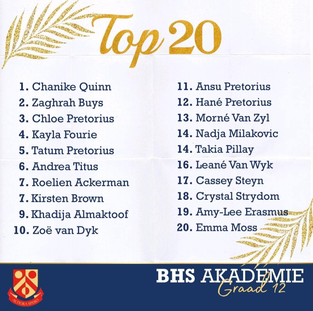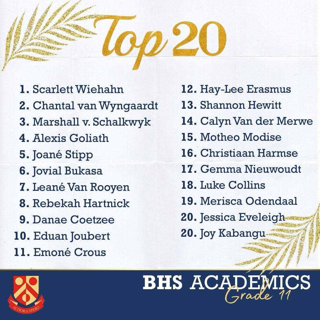 Hiermee Hoërskool Brackenfell Akademiese top 20 vir kwartaal een . Baie geluk ! Julle maak ons trots .