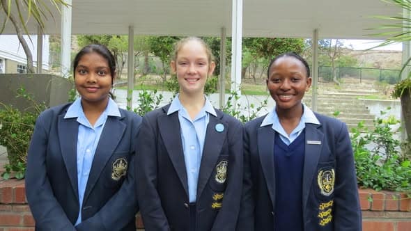 Voor vlnr: Cordia Walters (Gold, gr 9), Lucy Turvey (Gold, gr 11), Joeke Lubbe (Blou, gr 8), Simika Nariandas (Gold, gr 12), Janíke van Wyk (Goud, gr 9), Nontlé Xamlayo (Gold, gr 11) Afwesig: Kalipa Siyongwana (Gold, gr 11)