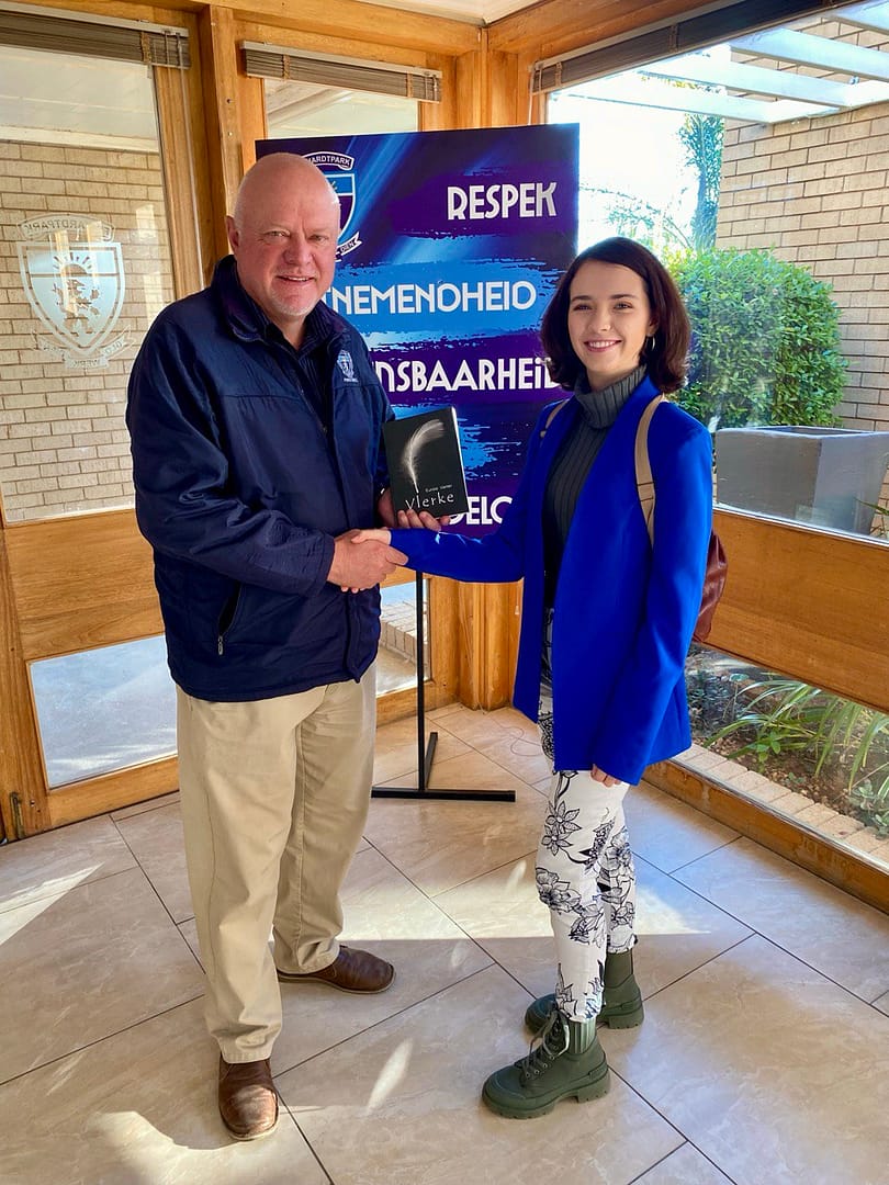 Skoolhoof Mnr. Herman van der Merwe en Oud-skolier Eunike Venter