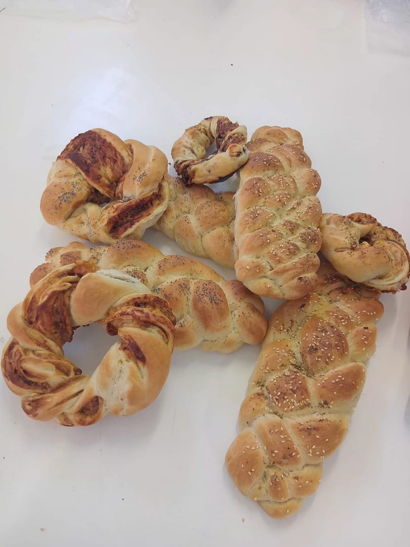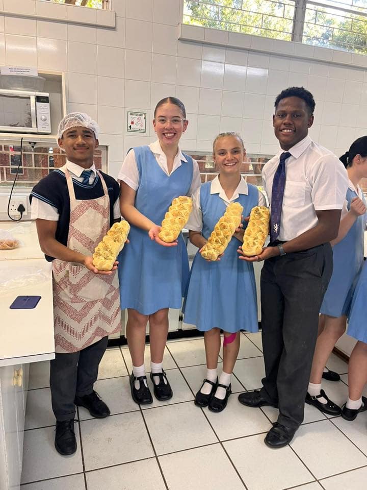 Elke leerder het gisdeeg berei, geknie en laat rys om verskeie spogbrode te bak. Hulle het geleer om 4-string-vlegsels, vegetariese pizzas, gegeurde gevlegde brode en verskeie variasies van broodrolletjies te vorm en te bak.