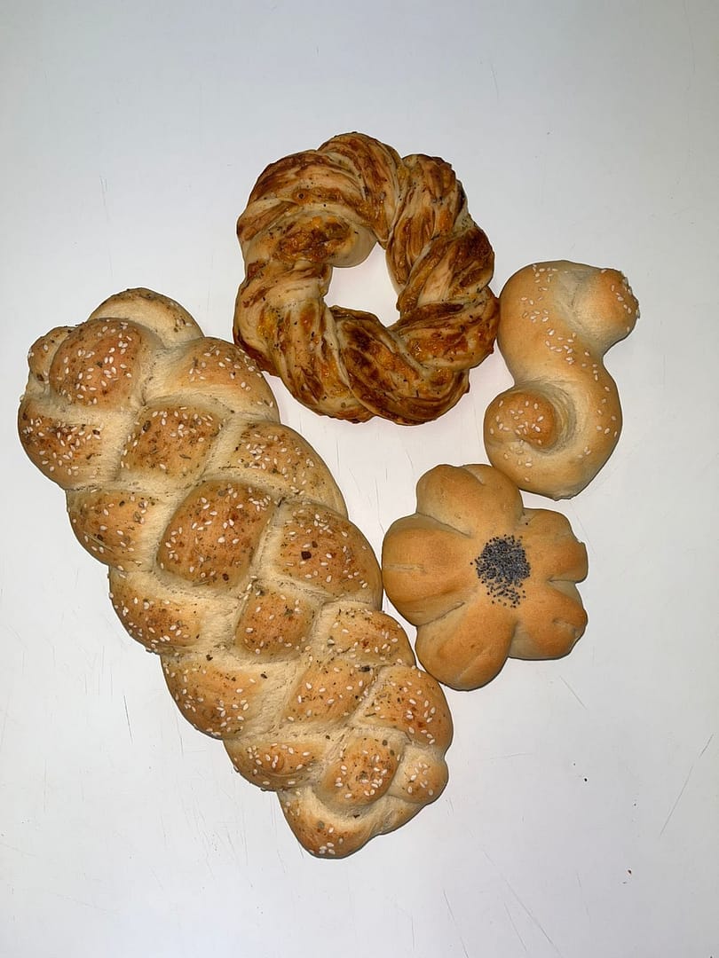 Elke leerder het gisdeeg berei, geknie en laat rys om verskeie spogbrode te bak. Hulle het geleer om 4-string-vlegsels, vegetariese pizzas, gegeurde gevlegde brode en verskeie variasies van broodrolletjies te vorm en te bak.