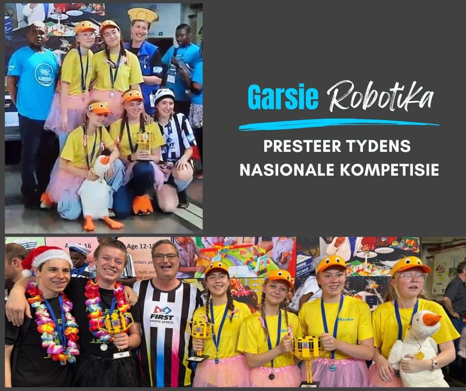 Die Hoërskool Garsfontein Robotikaspan het besonders presteer tydens die Nasionale kompetisie op 6 en 7 Desember by Sci-Bono in Johannesburg. Die Snuggly Ducklings het ‘n eerste plek in die Alliansie Spele en’n tweede plek in die Robot Prestasie kategorie behaal. Hulle was ook die algehele wenners van die kompetisie. Die Nuclear Juicers het algeheel’n tweede plek in die kompetisie behaal. Beide spanne ontvang uitnodigings na die Wêreld FIRST-Fees in Houston, Texas in April asook die Afrika Ope in Kaapstad in Mei maand, 2025.