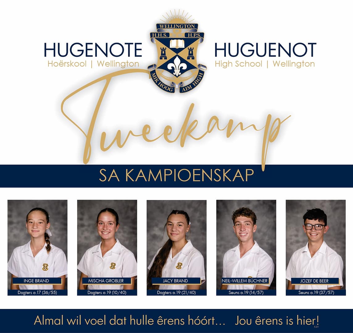 Baie geluk aan Hoërskool Hugenote se tweekampatlete wat die naweek aan die Suid-Afrikaanse Kampioenskap in Oudtshoorn deelgeem en pragtig presteer het: