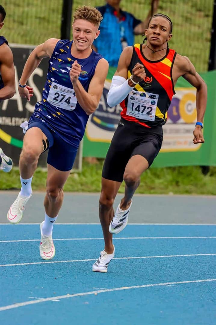 Bertie hardloop in die buitebaan langs Wayde van Niekerk