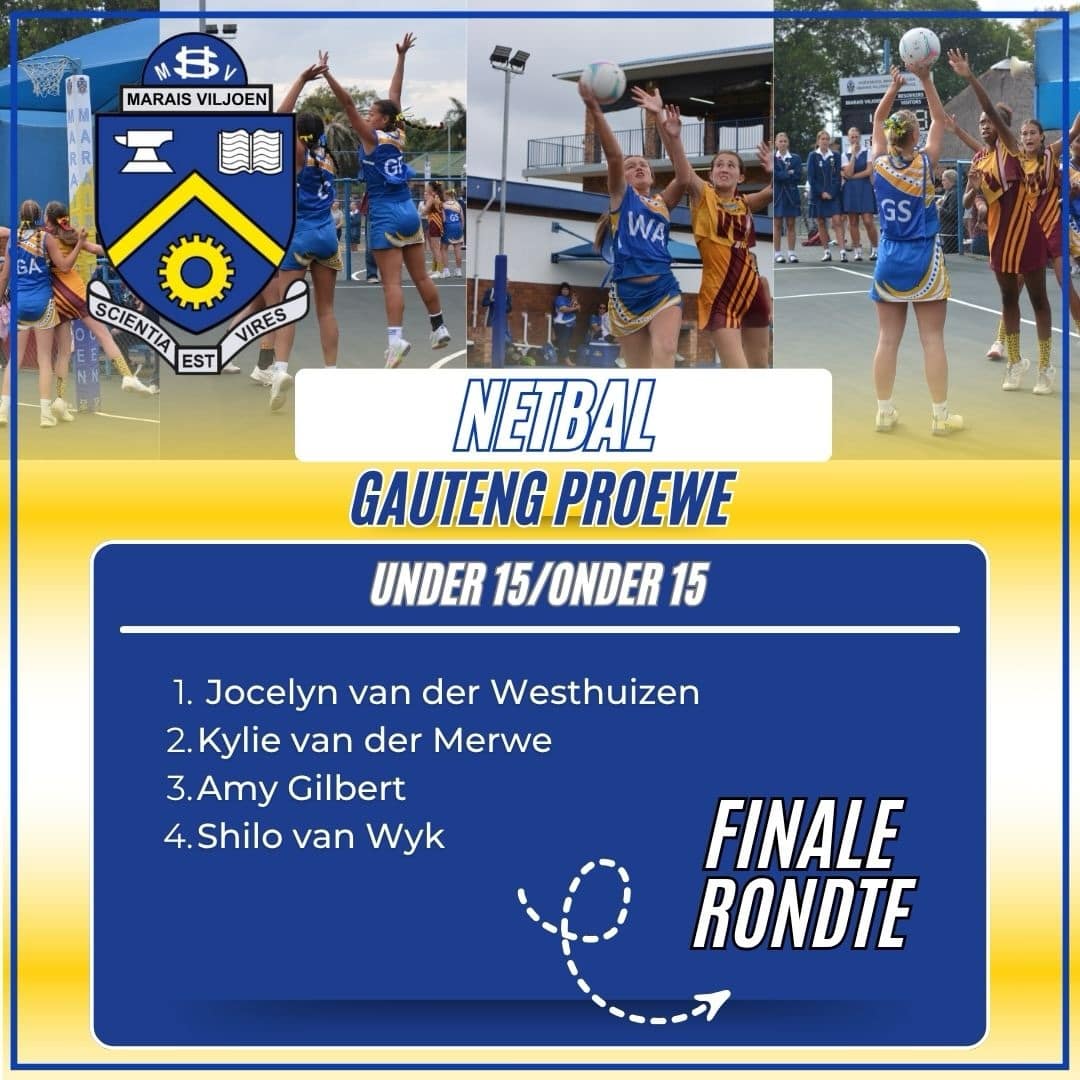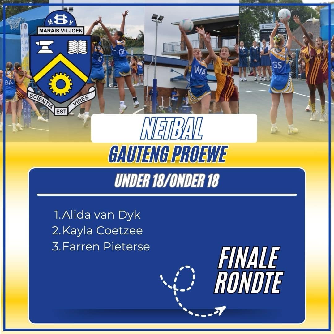 Hoërskool Marais Viljoen is ongelooflik trots om aan te kondig dat 15 van ons spelers deurgedring het na die finale rondte van die Gauteng netbalproewe, wat op 27 April 2026 plaasvind. This is a remarkable achievement and a testament to the hard work, dedication, and talent of our girls. To have such a large group of players in the final round is truly something to be proud of! We’re holding thumbs for each one of you! Play your hearts out and enjoy every moment on the court. You are not only representing yourselves, but also Marais Viljoen with pride