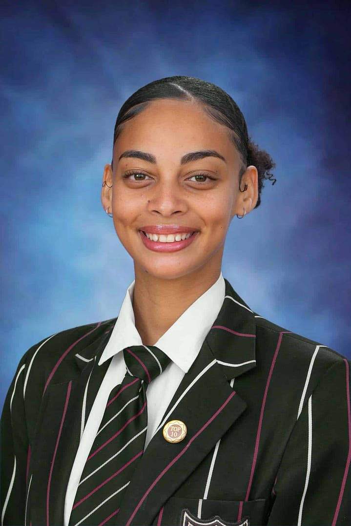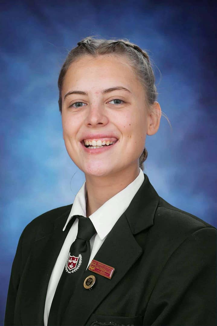 13. Britney Windwaai 73.57%, 3 Onderskeidings – Afr. EAT 83%, Business Studies 85%, Geography 81%