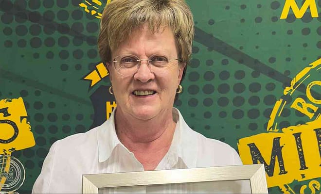 ie toppresteerders in graad 9 (2021) is voor van links: San-Mari Pedersen (1ste: 89,4%), Marsha Wagenaar (2de), Elizna Swart (3de), Samantha Schoeman (4de) en Ambé Festus (5de), en agter van links: Jada Coetzee (6de), Andri Raal (7de), Phoebe Smith (8ste), Kiara Kivetts (9de) en Clara Stuurman (10de).