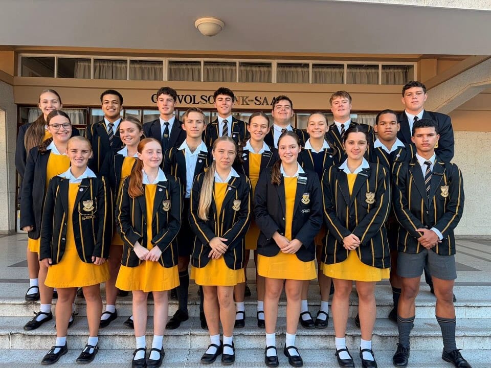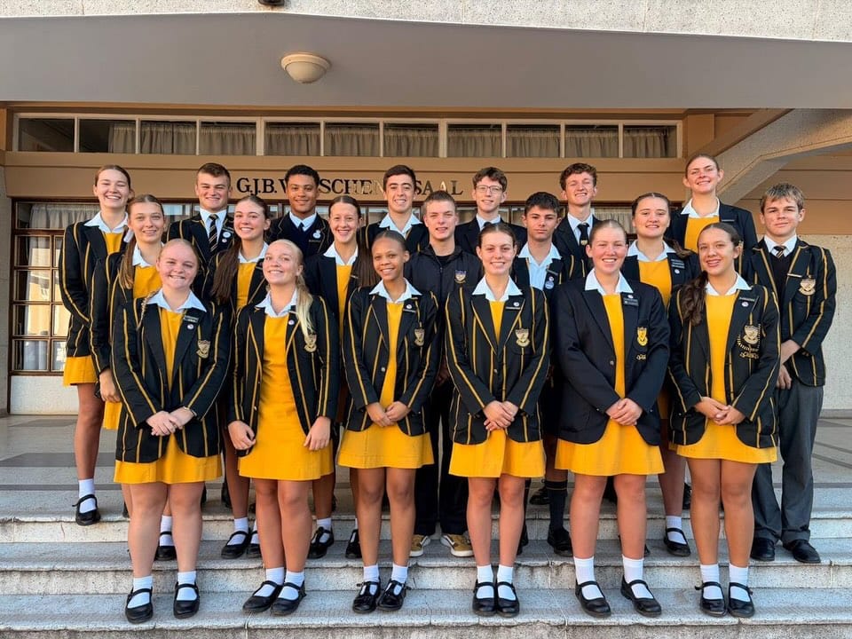 Graad 10 – Rori Goliath, Sydney Michaels, Minke Barnard, Caithlyn Botha, Ruby Lategan , Jordan Cook, Shenwin Petersen, Chloé Burger, Wilmaré Kamener, Jani du Plessis ,Katinka Maritz, Tatyana Viljoen, Jordan Barham, Ighardt Goosen, Waldo Labuschagne, JP Olivier,Déhan Meyer, Ardou van der Colff, Anneke Erasmus, Dandré Karstens, Reinhart Prins, Wian Stroebel